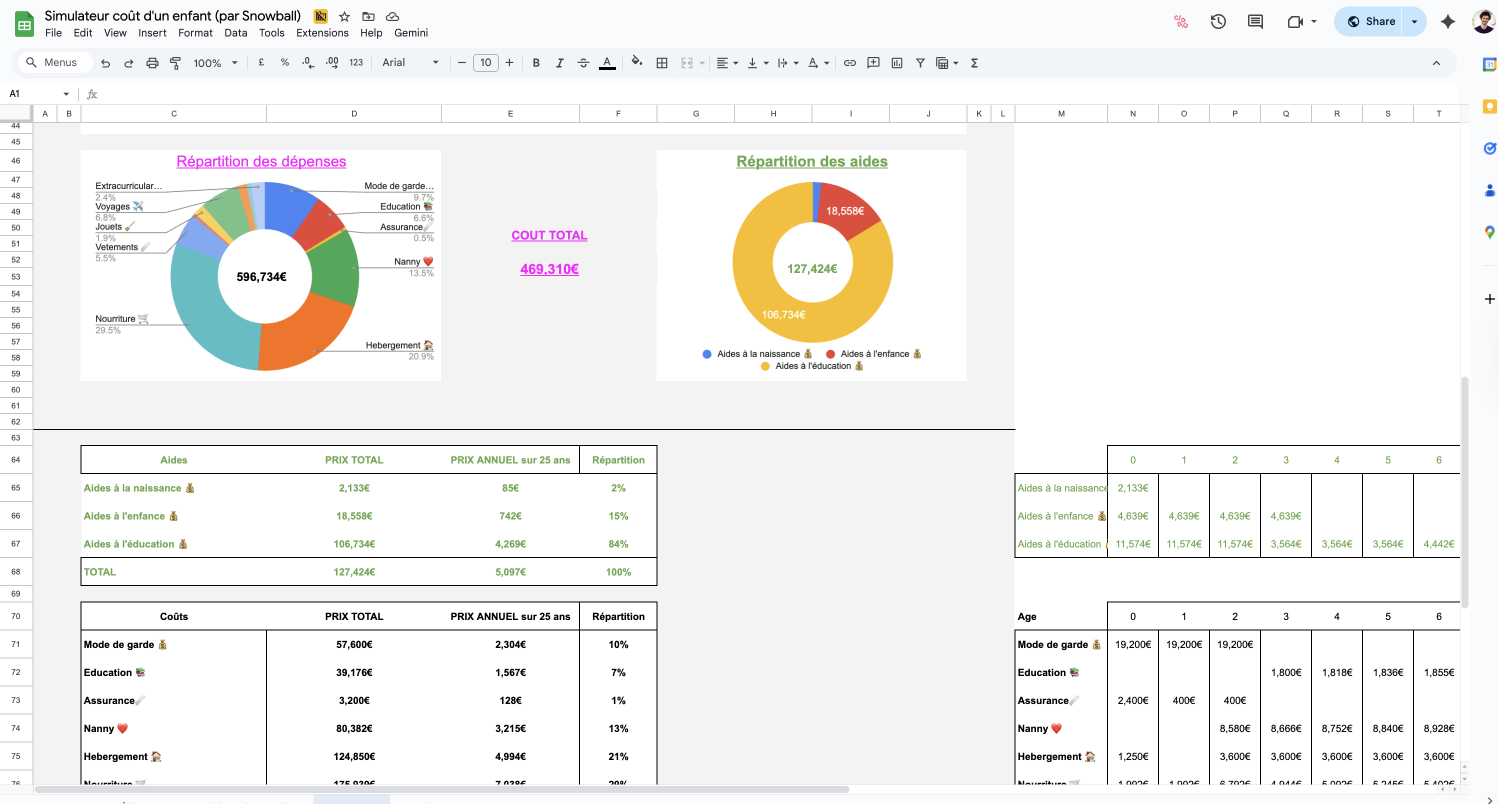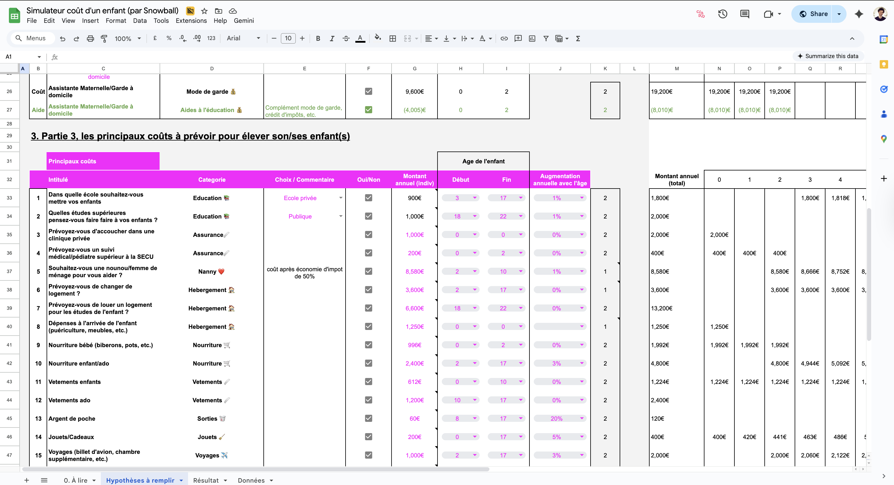 Dossier pour préparer financièrement l'arrivée d'un enfant - Google Sheet